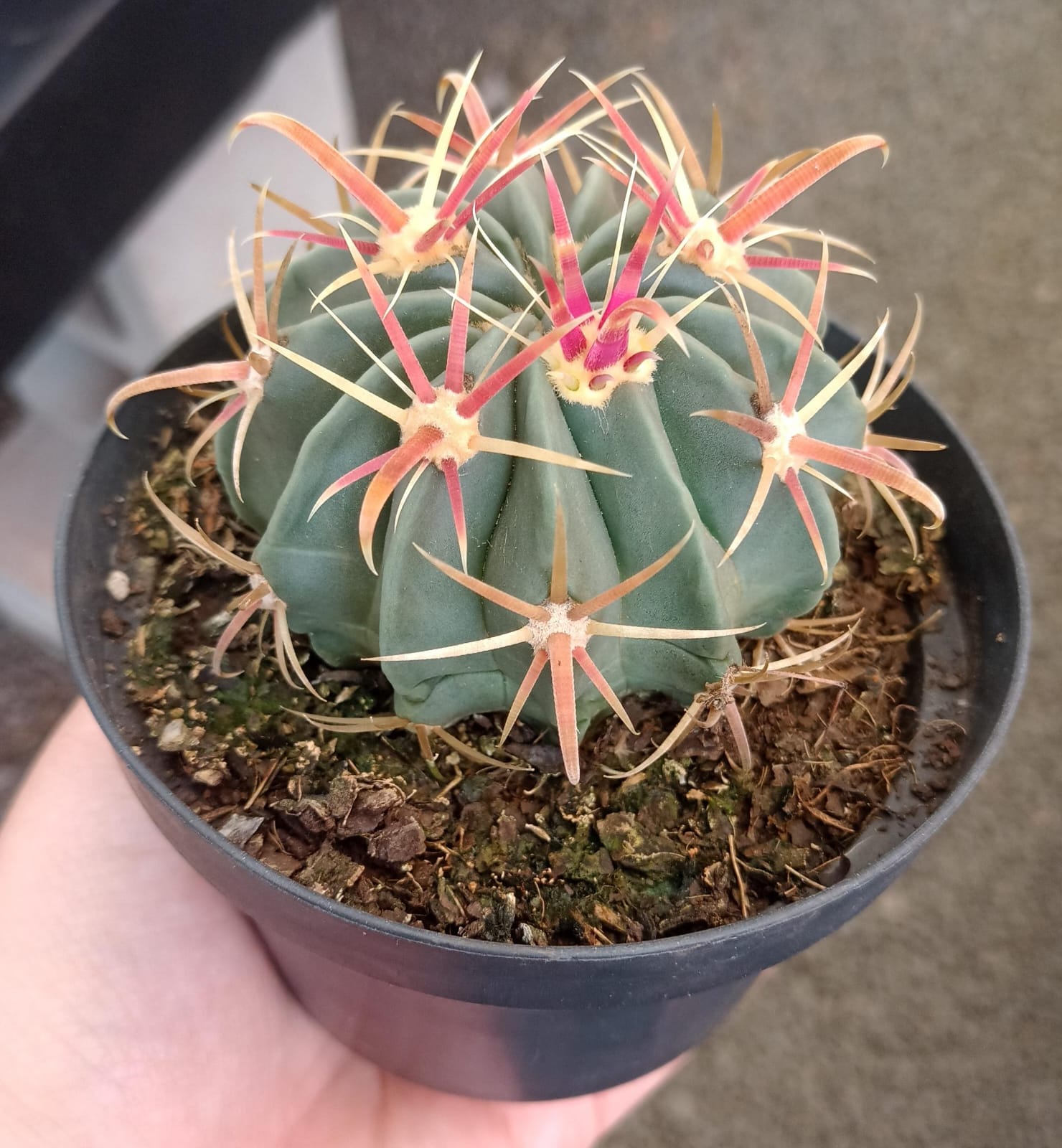 O Ferocactus latispinus é uma espécie de cacto barril nativo do México, popularmente conhecido como "Cacto Barril da Língua do Diabo" devido aos seus espinhos longos e achatados que se assemelham a línguas. Sua aparência imponente e flores vibrantes o tornam uma planta ornamental muito apreciada por colecionadores de cactos.